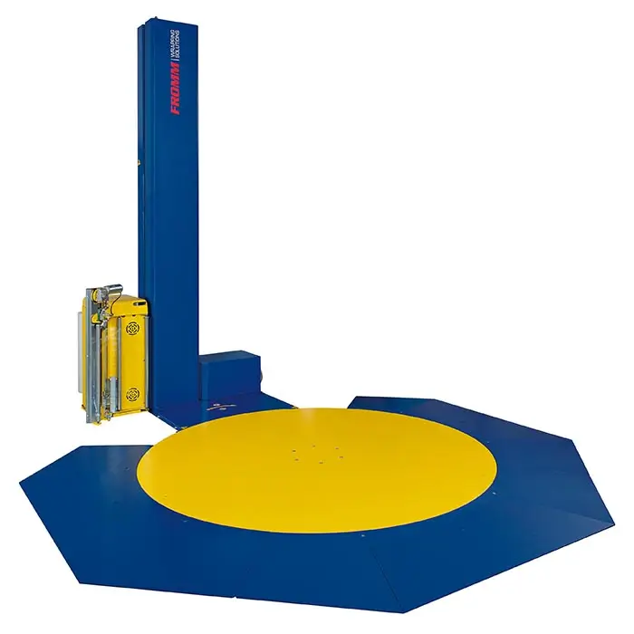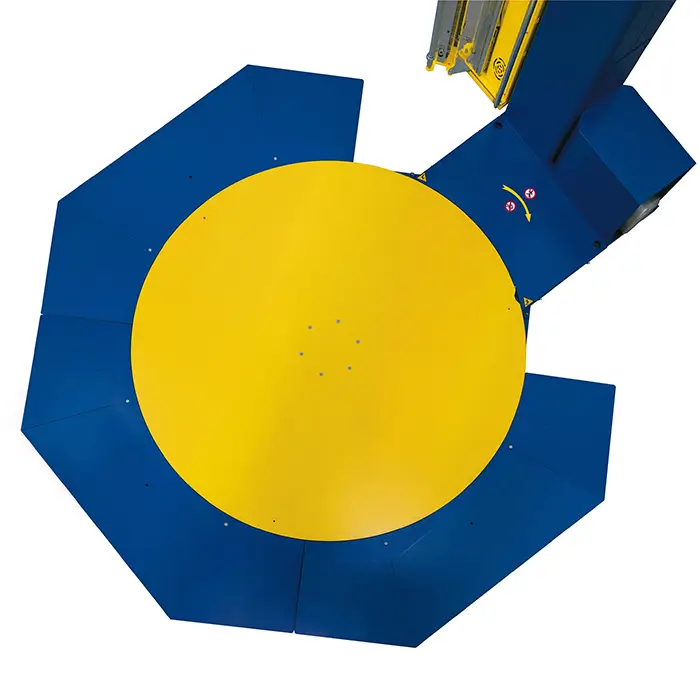 The FS380L is an ultra low turntable option. It allows you to wrap pallets with the greatest ease, using only a simple pallet truck. No forklift trucks or other heavy lifting equipment needed. With a turntable height of not more than 25mm and a diameter of 1,650mm, pallets of up to 1,200mm x 1,000mm can be wrapped. This low-maintenance turntable is equipped with an HD electric motor with belt drive and can make up to 12 revolutions per minute. It also features a roping mechanism for increased load holding power.
